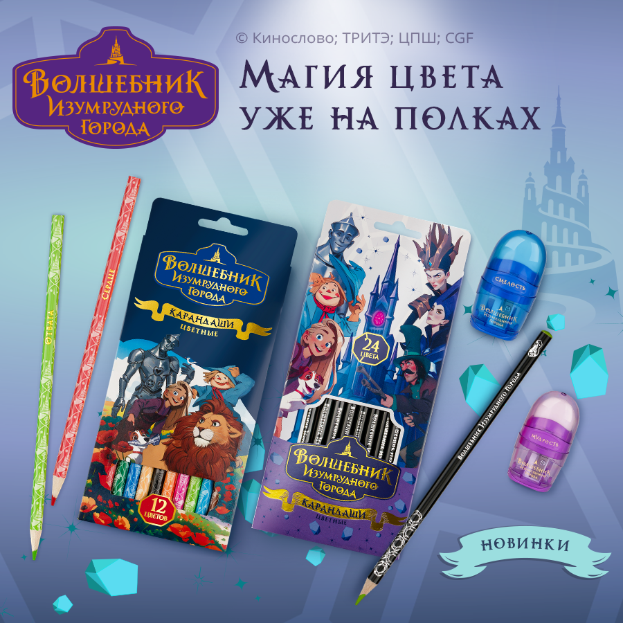 Цветные карандаши и точилка-ластик серии «Волшебник Изумрудного города» — идеальное комбо для творчества. Новинки станут отличным подарком для юных художников. Товары, которые напоминают о любимой истории, будут вдохновлять ребёнка.