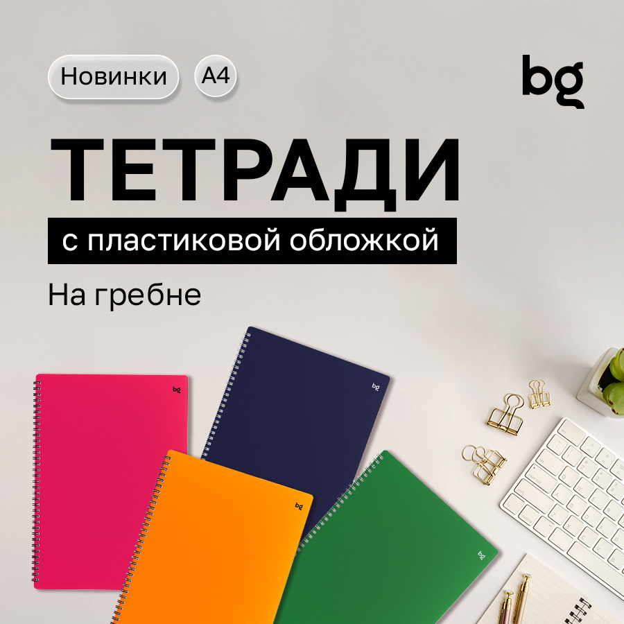 Бренд bg представил новинки в формате А4 с пластиковой обложкой. Выбирайте сдержанные лаконичные или яркие неоновые тетради для решения личных или рабочих задач.